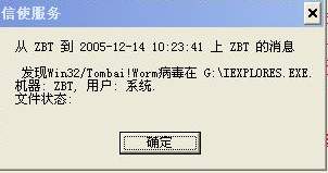 发现win32/tombai.worm病毒在G;iexplores.exe