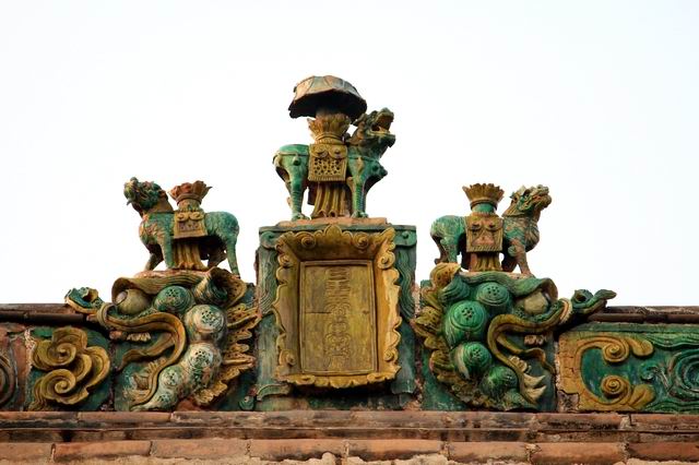 图六:毗卢大殿正脊上的琉璃件“皇帝万岁”,明代