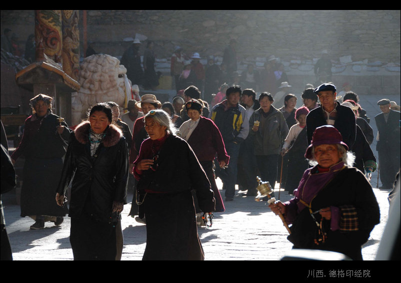清晨人们从四面八方来到德格印经院转经,一个上午几乎都不会停息