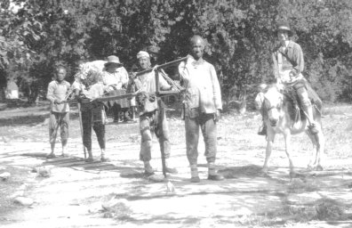 1924年,尤妮丝·普里斯(坐轿子)和贝瑞尔·史蒂芬(骑驴)由南口前往八达岭长城,摄影者何明清。