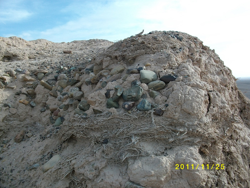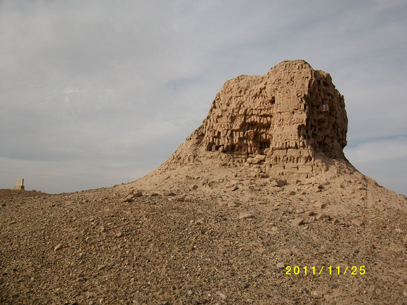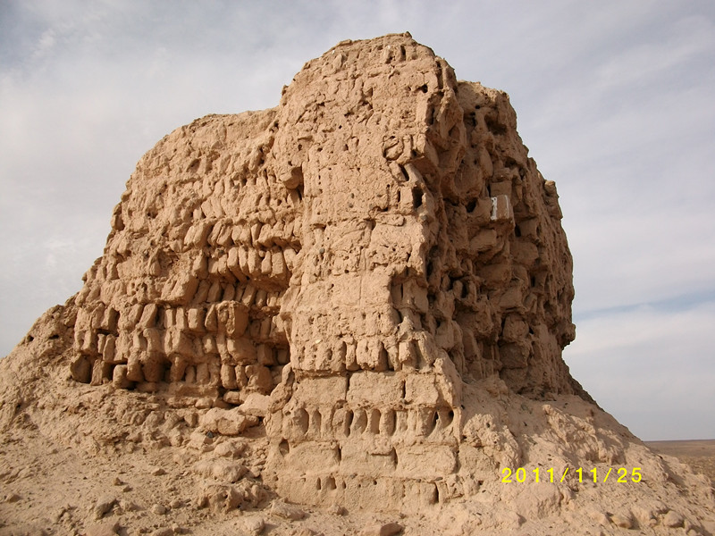 完全采用土坯砖砌成,自此到黑河岸边大多数烽燧采用此法。