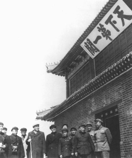 图一,1954年4月21日,毛泽东主席视察游览天下第一关,陪同者有杨尚昆,罗瑞卿,秦皇岛市和山海关区的负责人等