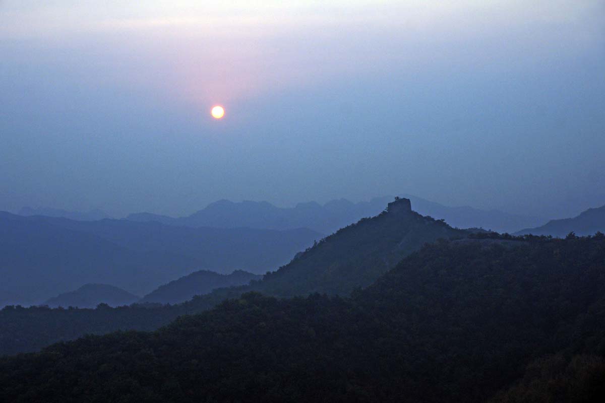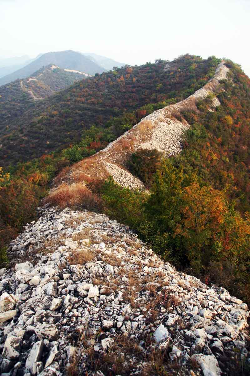 4、山口两侧残破的长城,像一条白带锁住群山。