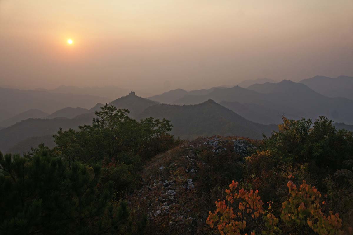 2011年9月26日,我与小江骑摩托到下花楼村,露宿在长城脚下,27日清晨登上极残破长城,看日出。唯见东边山脊上有一个较完整的敌楼。
