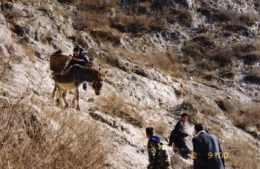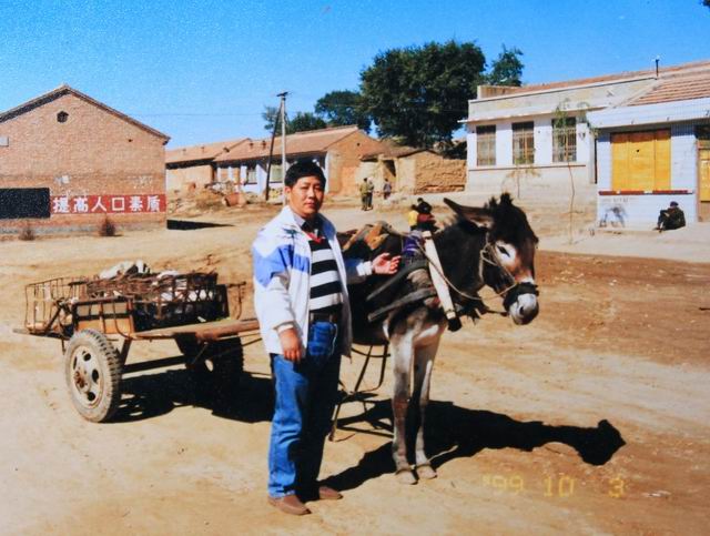 1999年重回小村寻旧,遇到当年的贫协委员,仍有记忆。当年的驴儿已经无寻,于是借辆驴车,拉车的驴儿没准就是当年驴儿的子孙,摆pose合影,以记其事。