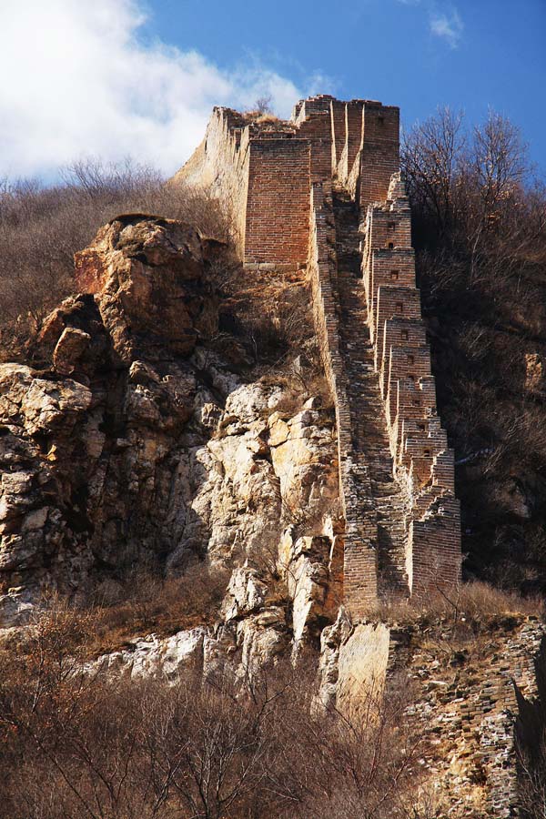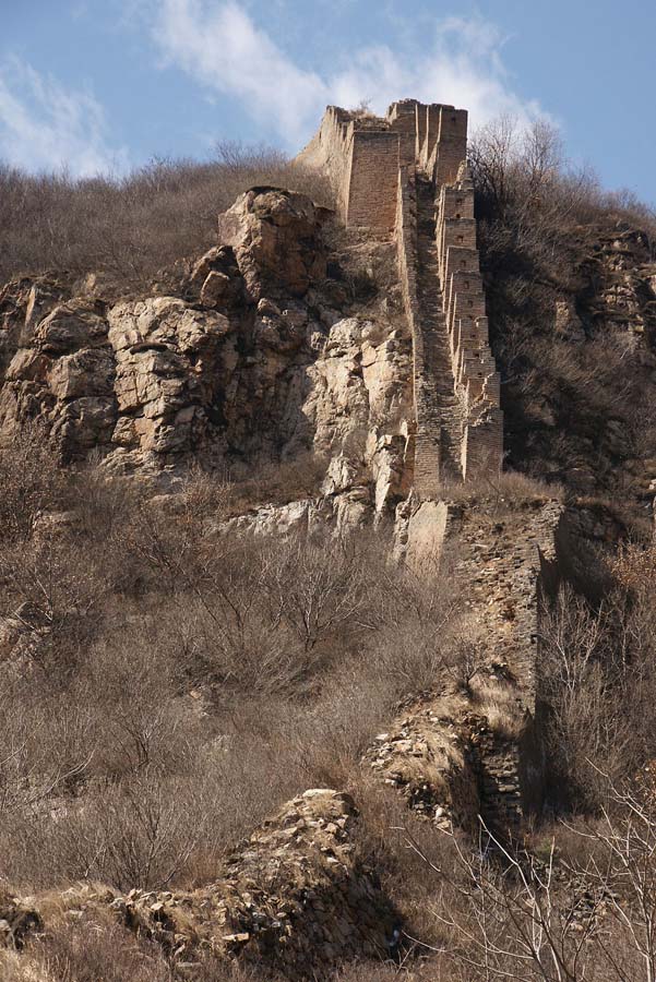 3、坡度最大处接近75度。几年前我骑摩托到过五道梁村(但没登上这段长城),今天我一定要由此攀上。