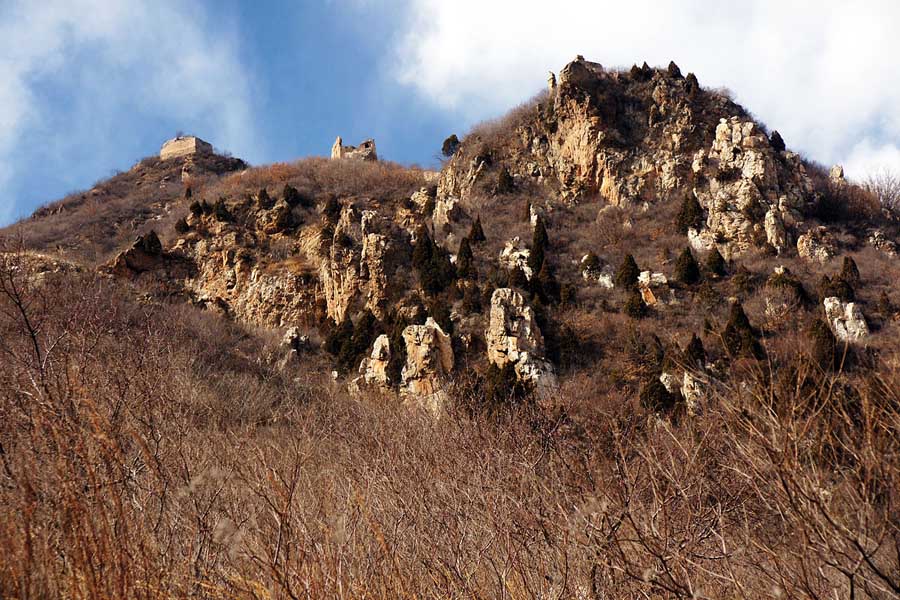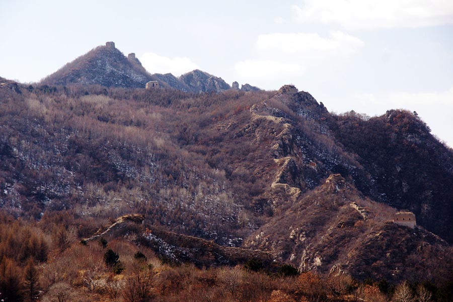 1、西望过更远处的长城,山是又开始陡峭起来,据说可以沿它走到接近白岭关的高山上,哪里会碰到不可逾越的崖壁。但从那儿下山,可由蔡家甸返回京城。此时已经是下午两点,我没有再走天梯下山,而是找到一条关外的小路绕行下山。
