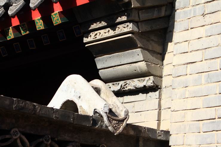一般来说,桥是过车走人的。可这小桥是走水的,所以我给它们杜撰一个“水桥”的雅号。“水桥”小巧玲珑,生动活泼,防止流水溅到墙脊,起着保护作用,也给建筑增加了活力。不过“水桥”毕竟是杜撰的,在古建筑学中,这种构件叫什么,还清古建高手指出。