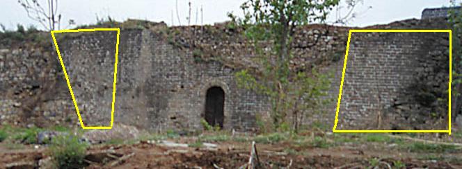 根据5月1日和5月10日照片对照,图中黄线圈起的范围被拆毁。根据砖逢有一种可能,拆毁部分与小门周围可能不是同一时期。