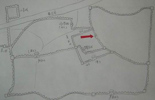 东门原有门楼,后皆毁,遗址处仅留一豁口,还堆满垃圾。断面处能看到的数块条石,显示出这里曾有过大型建筑。