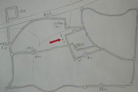 真武山位于紫荆关关城之中,山脊上的城墙将关城分为东西两部分。东部较小,设有文武衙门;西部较大,为屯兵之地。