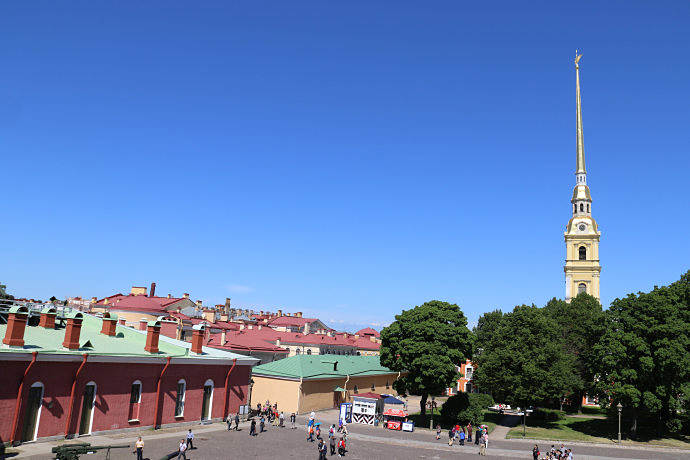 今夏去了趟俄罗斯,重点看了一座军事城堡─彼得保罗要塞。彼得保罗要塞是俄国在同瑞典进行北方战争中,为了扼控涅瓦河口,彼得大帝为它选择在易于防御的兔子岛并亲自监督建造。今天的俄罗斯第二大城市圣彼得堡最初时期的建设就是在这座小岛上进行的,后来的城市建设也是以此为中心发展扩大,因此可以说这里是圣彼得堡市的前身与摇篮。
