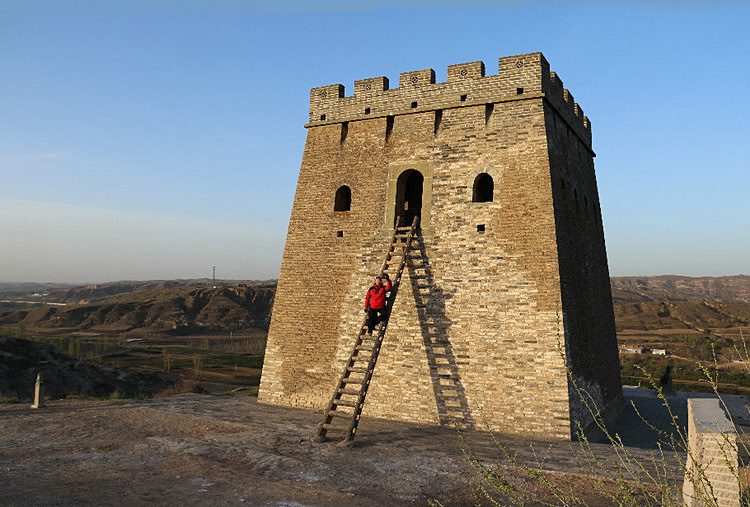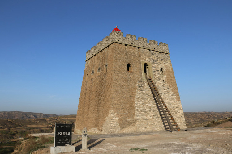 明长城转角楼位于陕西府谷麻镇的清水川和小南川沟交会处的石山峁上,清水川和长城在这里拐了个弯,转角楼由此得名。这座大敌楼背川面山,左陵右壑,地处要塞,雄伟壮观。前些年转角楼损毁严重,岌岌可危,县上划拨160万元专款,由长城保护协会会长刘东厚精心组织能工巧匠,于2011年照原样修复了它。修复转角楼的墙砖全部是从周围老百姓家里收购回来的,这样才使修复后的转角楼更接近于原貌。