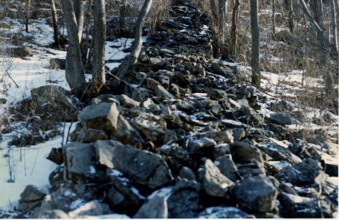 三道关滥水关下面的北齐长城复线。东面的寺儿峪、西面的贺家楼村西明长城下面也都有。明长城只加宽加高了北齐长城的主线,复线也适当修复或未再修复继续利用。如贺家楼西面东侧修复并重新勾灰的复线比西面未修复的遗存要高近一倍。