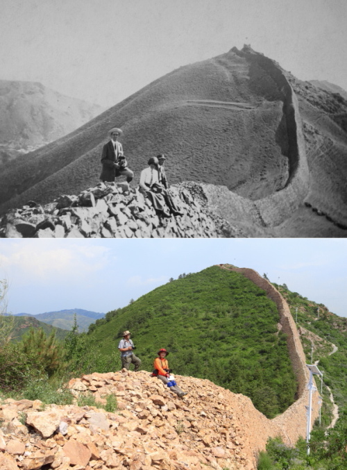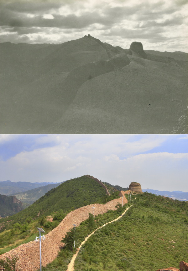 经过两天高温烈日的考验,在长城沿线往返步行穿越10公里,找到6张老照片拍摄地点,取得优异的成绩,蓉儿友情客串模特儿,复拍了精彩的对比照片。