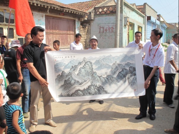 中国长城学会领导为我镇颁发了《长城保护功勋单位》牌匾予以表彰;香港中国传媒集团裴宪中院士(画家)还为我镇赠送了自己的长城画卷一幅;我镇副镇长孙世明在活动中发言,一再表明保护长城是我们新平人的责任,保护长城就是保护我们的家园,保护长城就是保护我们新平人的财富;孙镇长和郭部长共举《2010长城保护宣传万里行》大旗,村民齐声高喊口号:“爱我长城,修我长城”把活动推向高潮!
