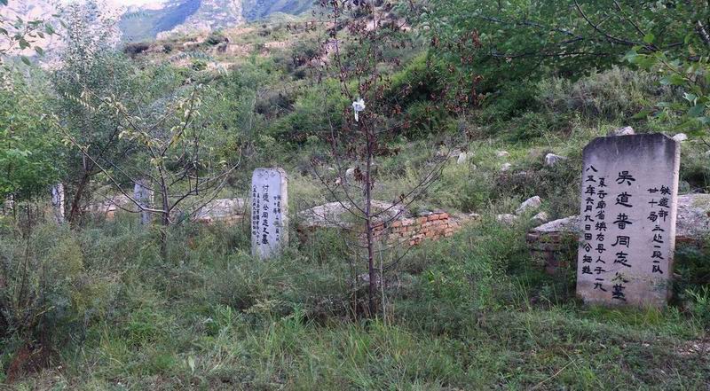 图五,大秦铁路建于20世纪80年代,是中国第一条双线电气化重载运煤专线。山中那五座坟茔长眠着修建大秦铁路时牺牲的5位铁路工人,