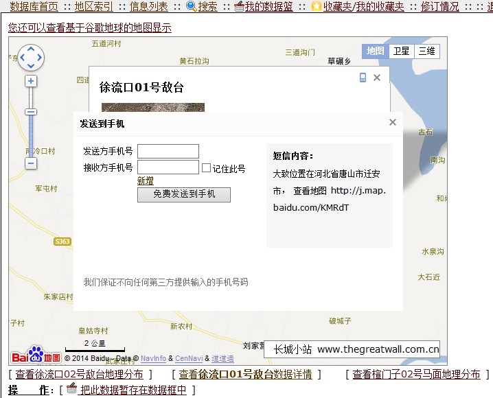 百度的精度虽然低、没有高分辨率的卫星图,但是在小地名的显示上比谷歌地图丰富,此外百度还提供了一个手机分享的功能,可以将位置信息分享到手机上去。见图示。