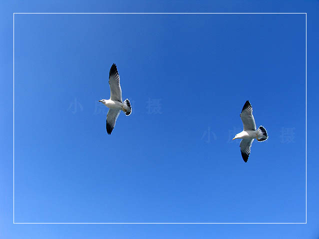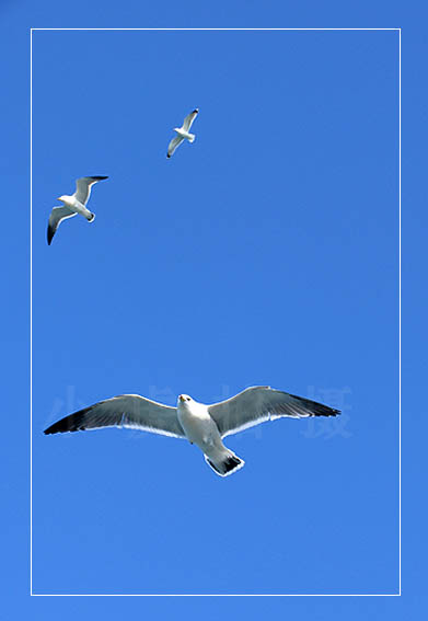 在我们乘坐的轮渡船尾一直有许多海鸥追随,一直跟到烟台去了,就为了吃观光客投掷的食物,真是有点鸟为食亡的感觉啊!