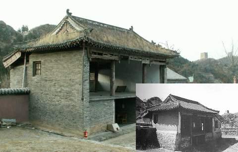 新老照片比较,药王庙戏楼砖石部分已经重建,有明显的增修和缺失部分。但是戏楼和山门的木结构仍然是古物。