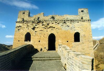 由于采用外脚手架施工要求敌楼周围有较多的平地,且搭建外脚手架要求材料较多,因而在整段司马台长城中这样的情况并不多见。